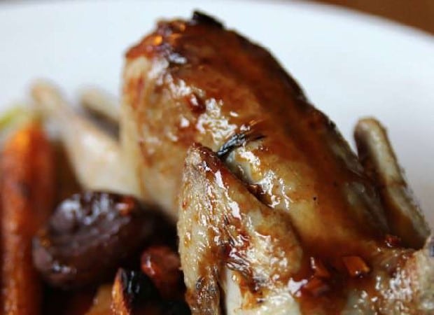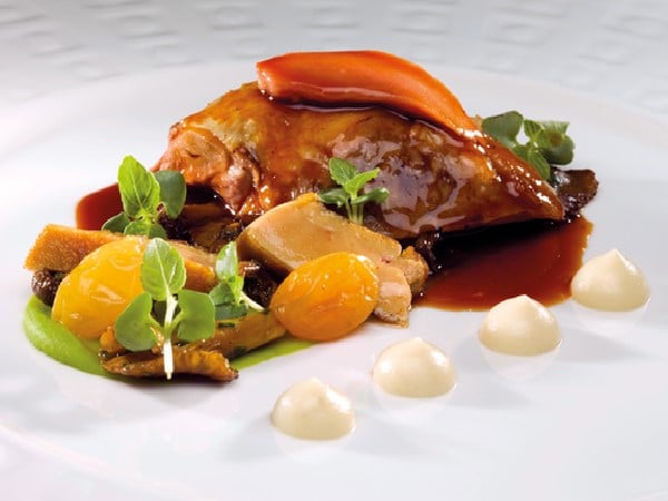 Pigeonneau de Racan cuit à basse température, foie gras poêlé et champignons