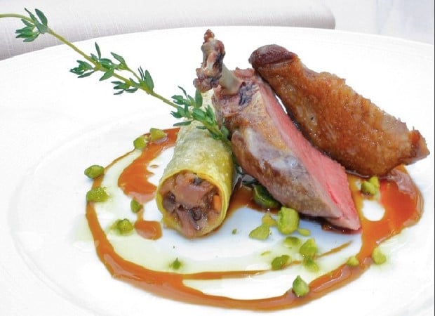 Suprême de pigeon rôti au jus, cuisse en cannelloni