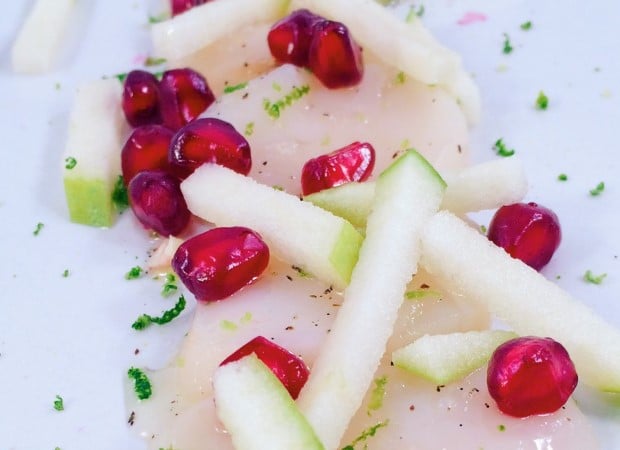 Carpaccio de noix de Saint-Jacques à la grenade et pomme granny