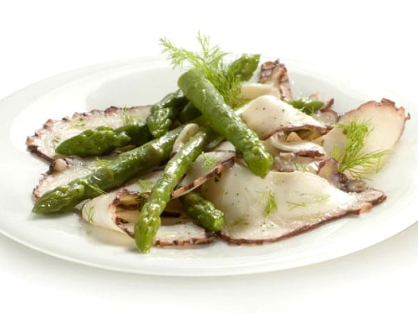 Carpaccio de poulpe aux asperges vertes
