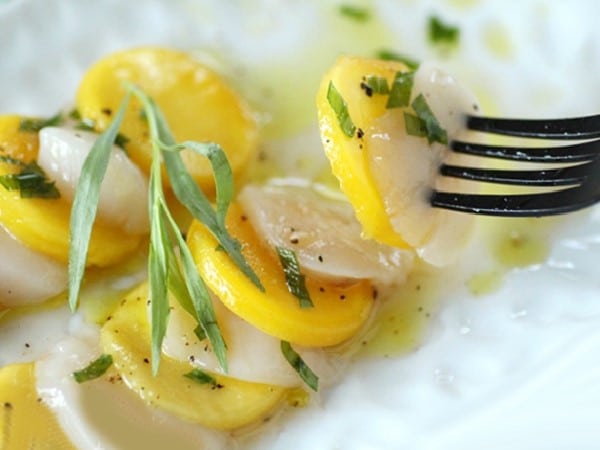 Carpaccio de Saint-Jacques à la mangue et estragon