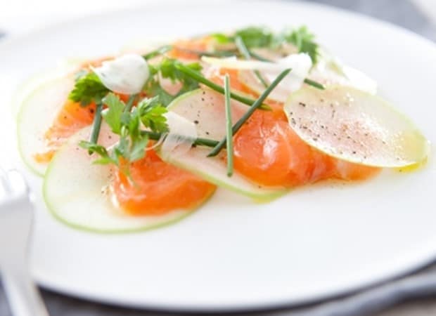 Carpaccio de saumon fumé et de de pomme verte