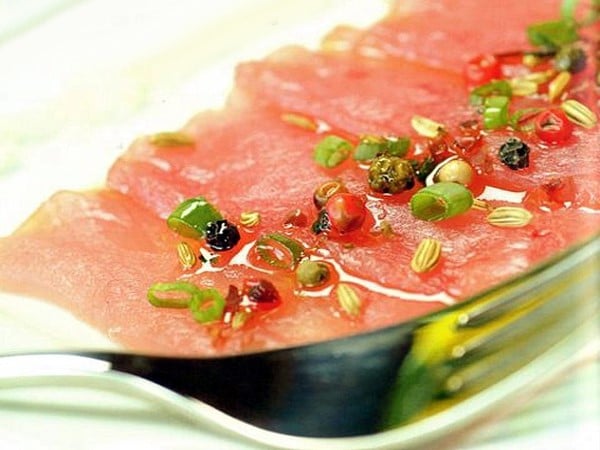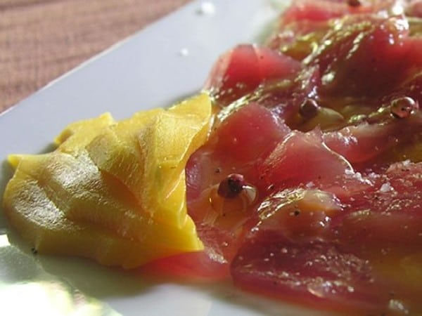 Carpaccio de thon rouge au vinaigre de mangue