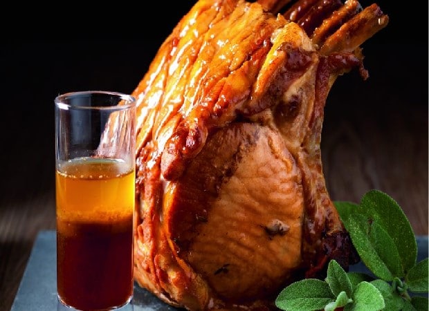 Carré de porc rôti au caramel et jus tranché