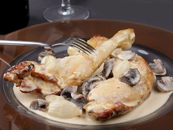 Poulet au vin blanc et champignons