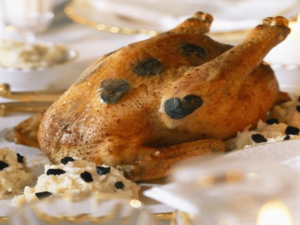 Poulet rôti contisé aux lames de truffes