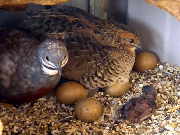Couple de cailles et ses œufs