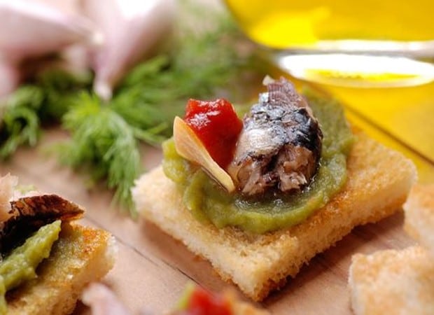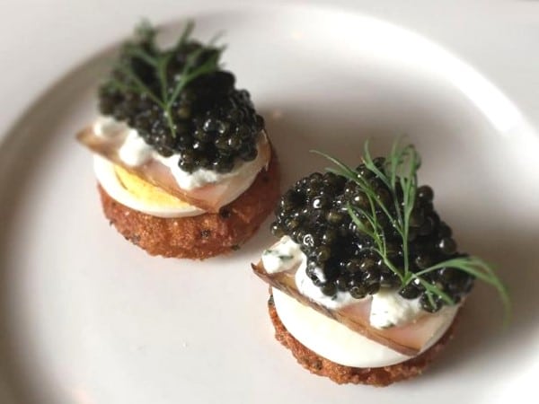 Canapé au caviar, anguille fumée et chantilly acidulée