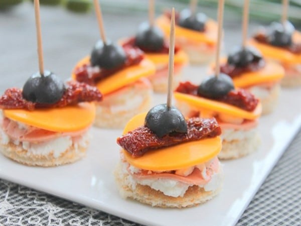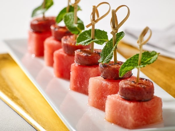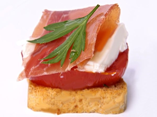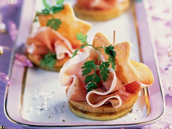 Canapés au jambon de Bayonne, foie gras et pomme granny-smith