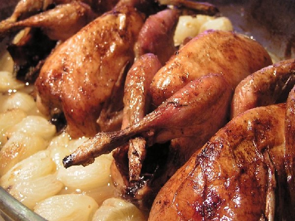 Cailles rôties aux raisins blancs