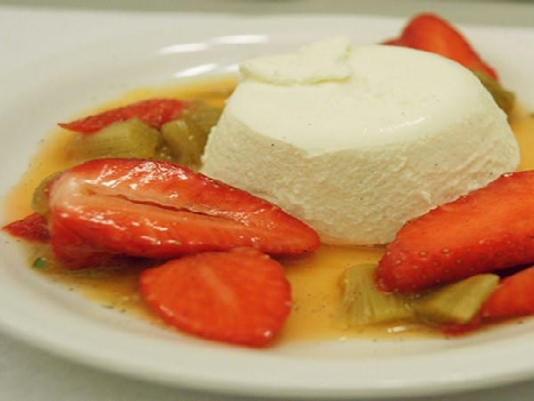 Flan à la crème aux fraises et compotée de rhubarbe
