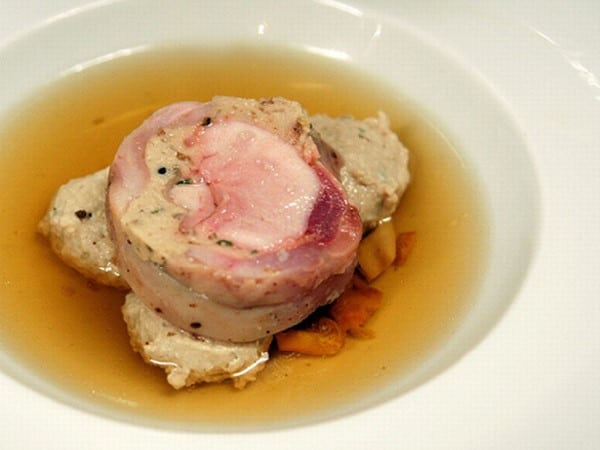 Galantine de caille dans son bouillon