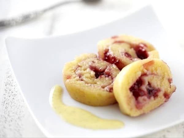 Gâteau roulé à la confiture de framboise et crème anglaise à la vanille