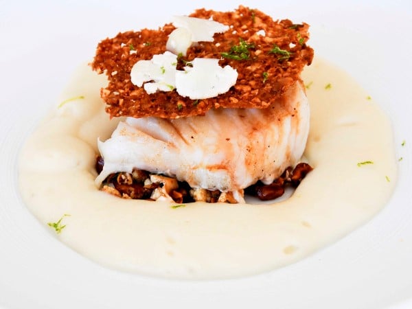 Cabillaud au four, coulis de chou-fleur et cacahuètes
