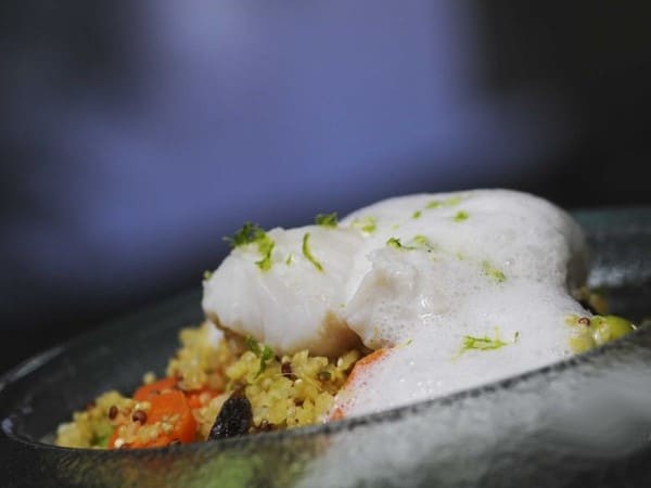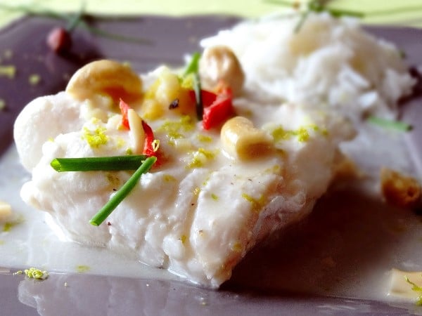 Cabillaud poché au lait de coco, citron vert et citronnelle