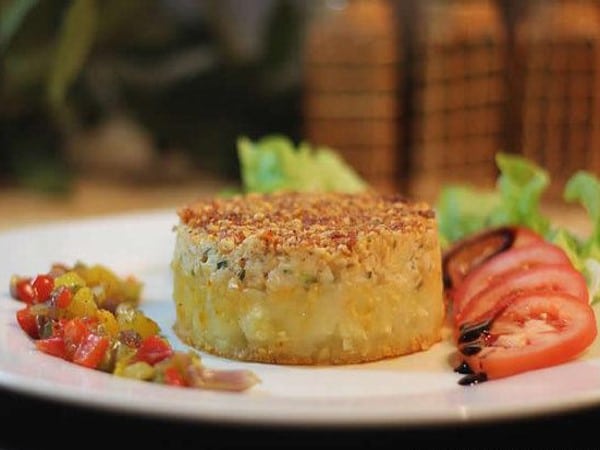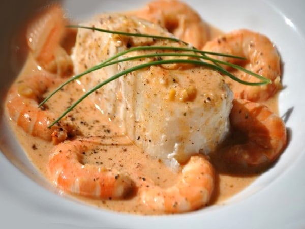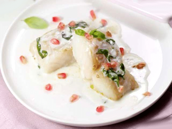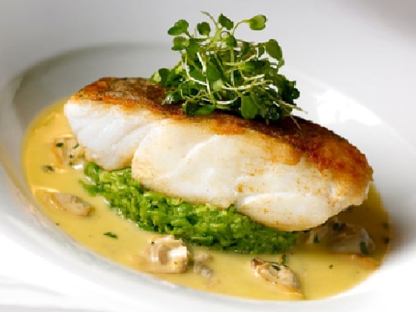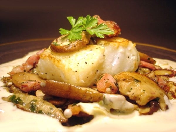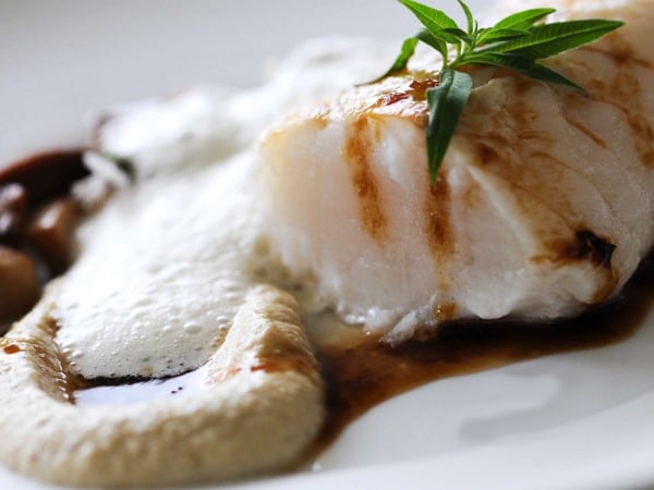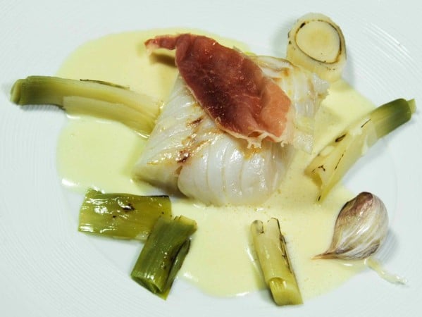 Cabillaud poêlé, crème d’ail confit et jambon du pays basque