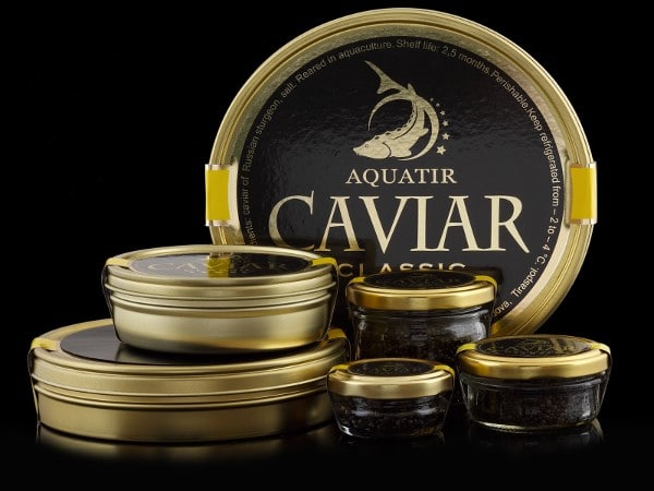 Boîtes de caviar et bocaux de caviar pasteurisé