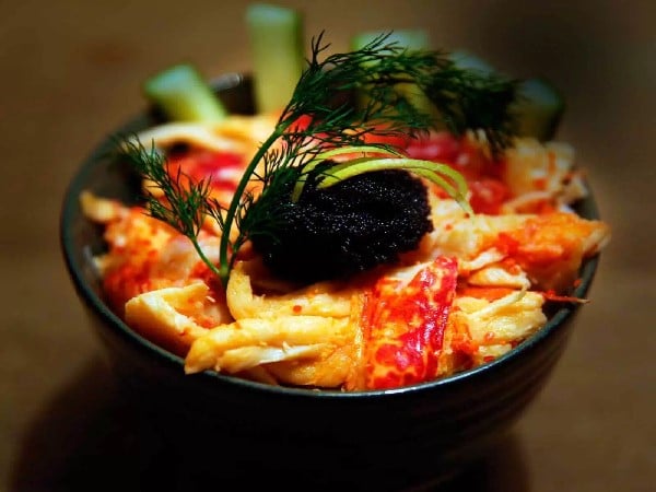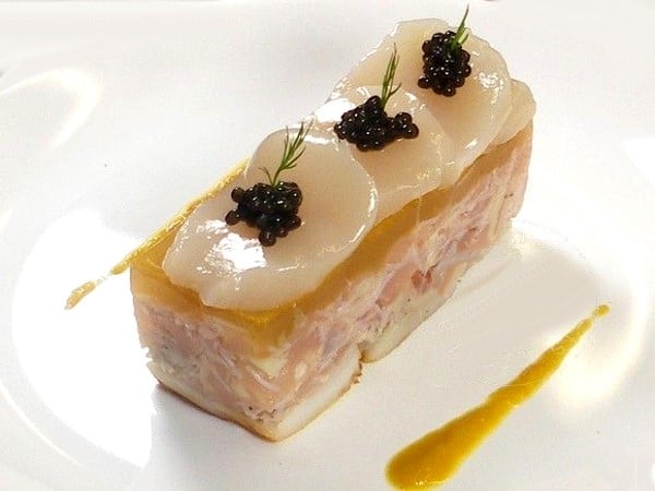 Tartare de tourteau et de bar aux Saint-Jacques et caviar d’Aquitaine