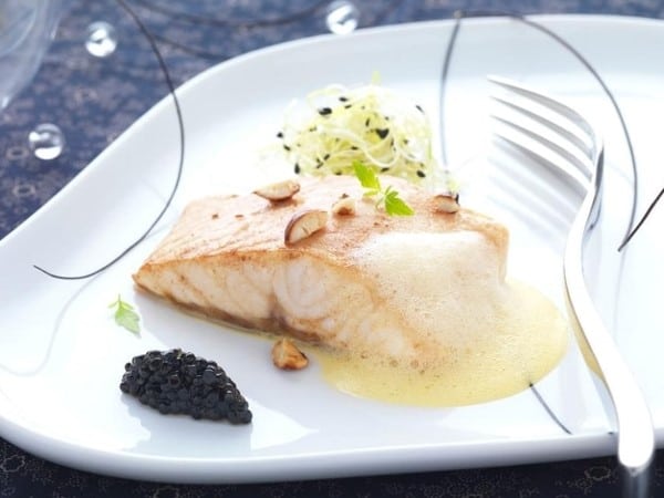 Dos d’esturgeon aux noisettes grillées, beurre moussant et caviar malossol