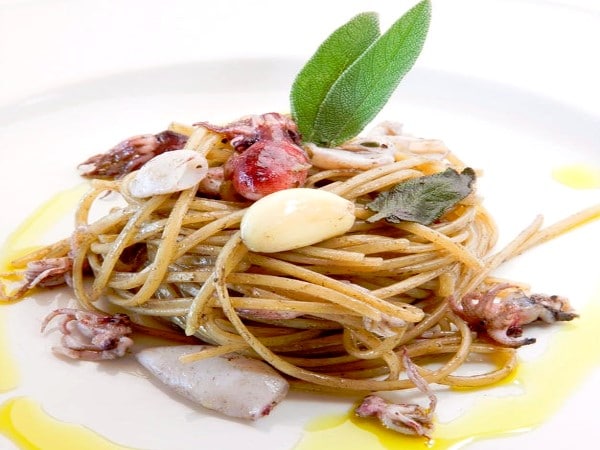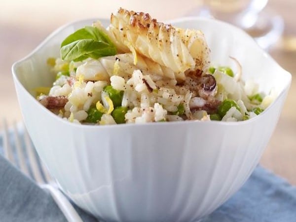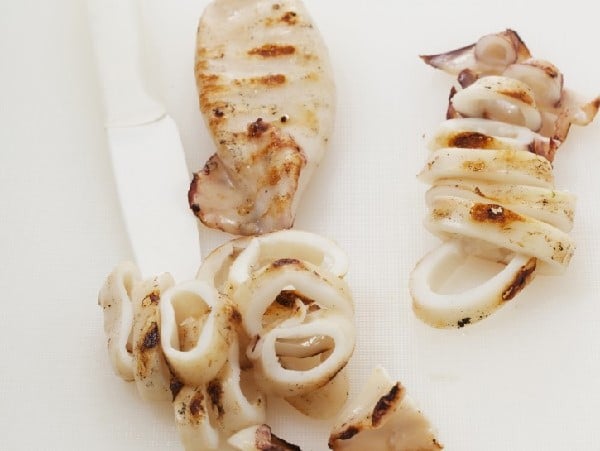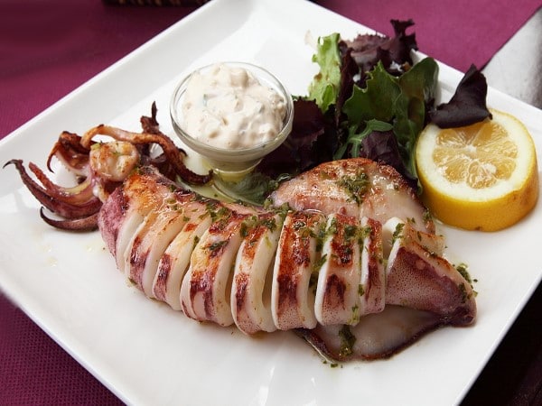 Calamar grillé à la plancha, mesclun et sauce tartare