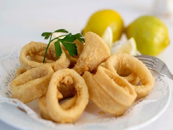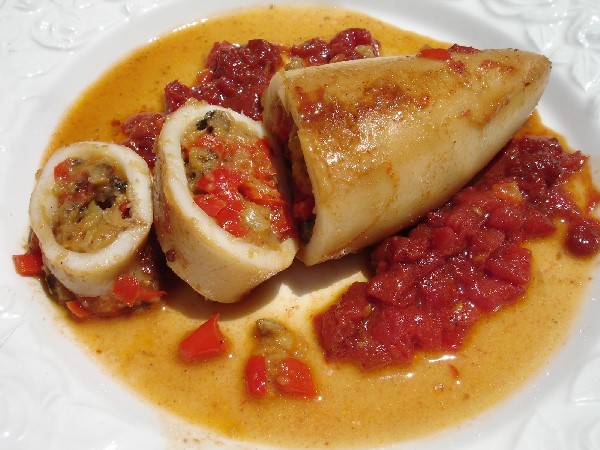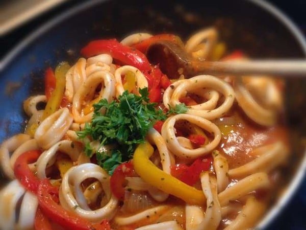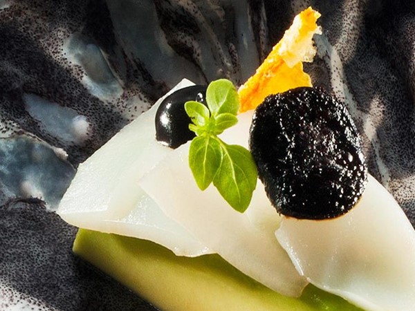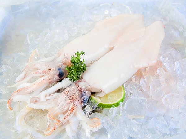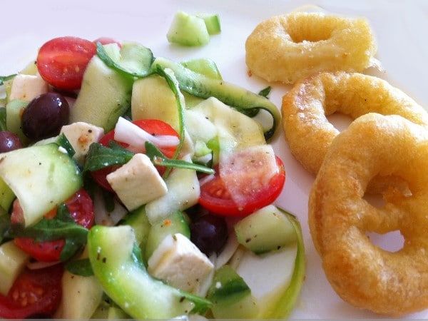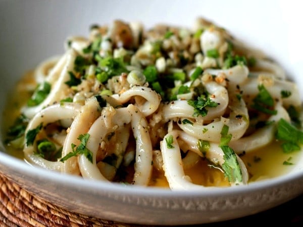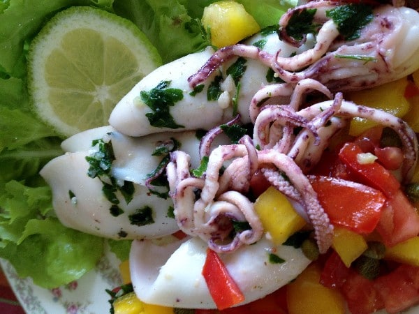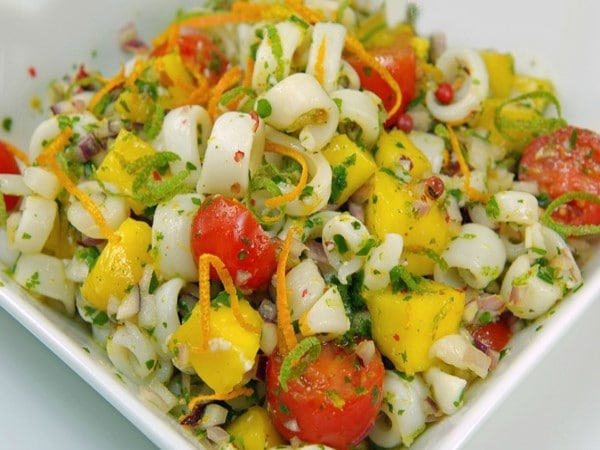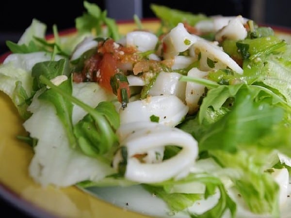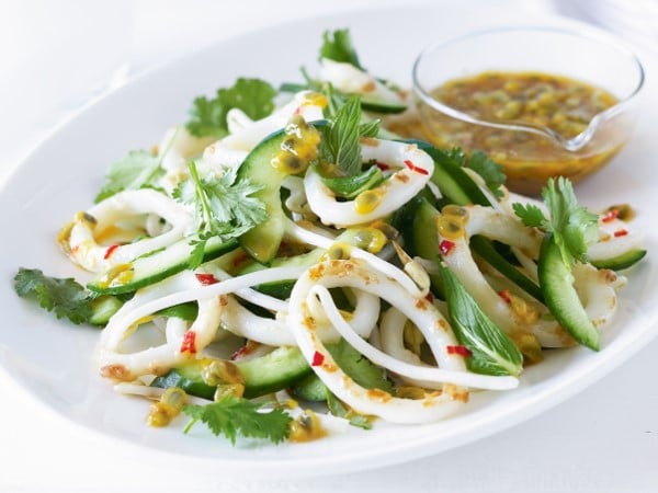 Salade de calamars au concombre et piment, vinaigrette au fruit de la passion