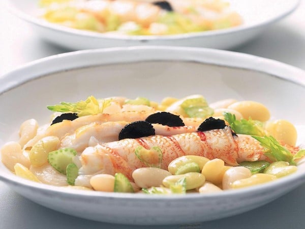 Langouste en salade de haricots aux truffes noires