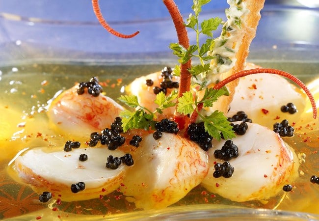 Médaillons de langouste en gelée aux grains de caviar sevruga