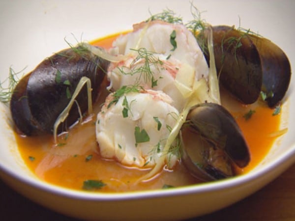 Médaillons de langoustes au jus de bouillabaisse et moules espagnoles
