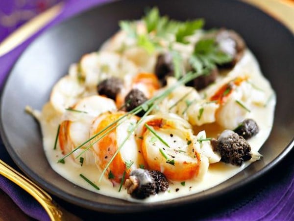 Queue de langouste au vin jaune et aux morilles