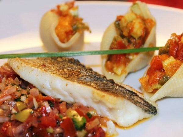 Filet de dorade, sauce vierge et conchirigatis toscans