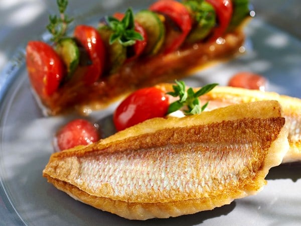 Filets de dorade rose grillés et julienne de légumes de Provence