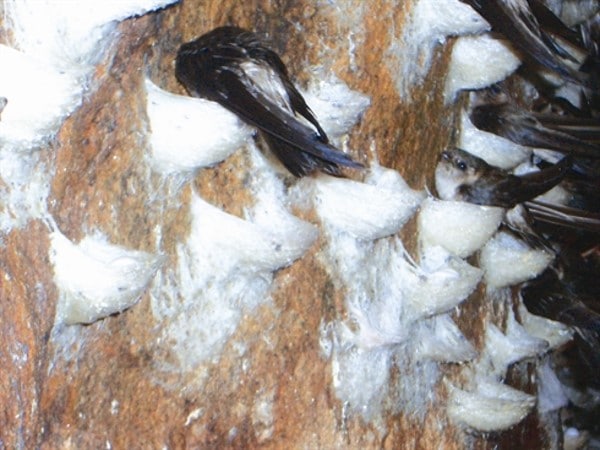 Hirondelles salangane dans leurs nids