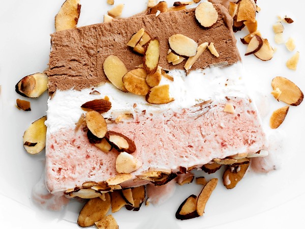 Tranche napolitaine aux amandes effilées