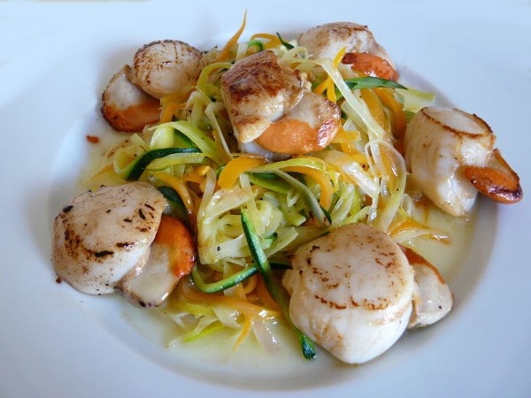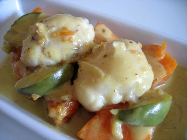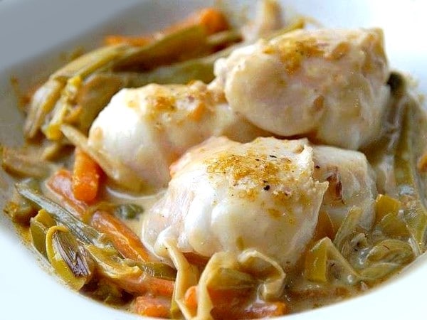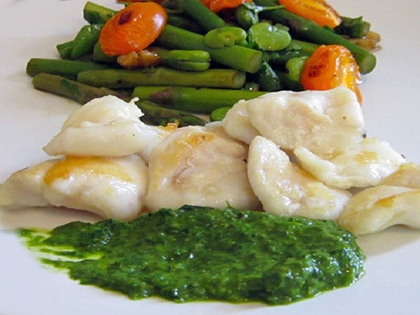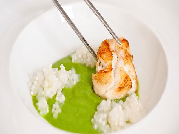 Joues de raie au beurre noisette, crème de petits-pois et tapioca
