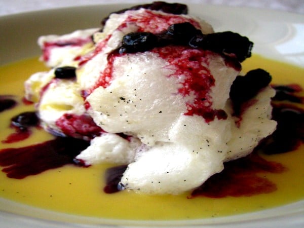 Île flottante au coulis de myrtilles
