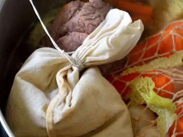 Cuisson du Kig ha farz en sac noué