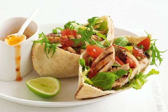 Pitas au poulet et crudités