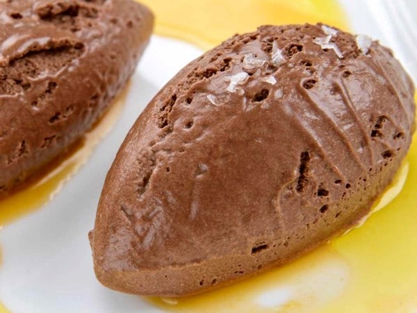 Quenelle de mousse au chocolat noir et jus de clémentine