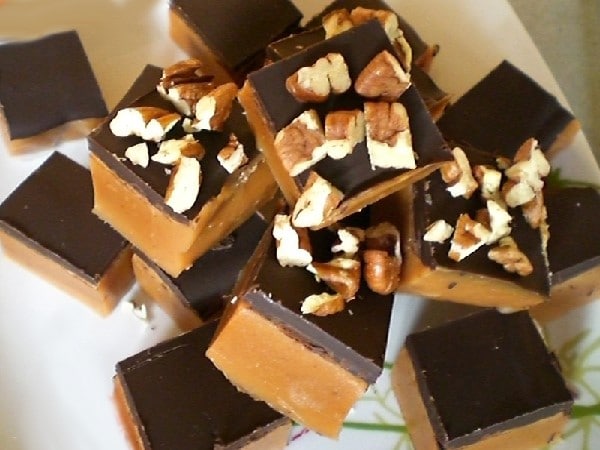 Bouchées au chocolat noir et caramel aux éclats de noix