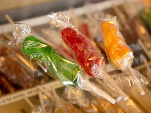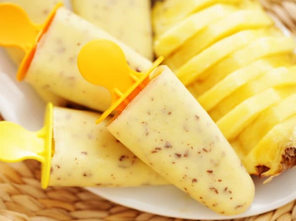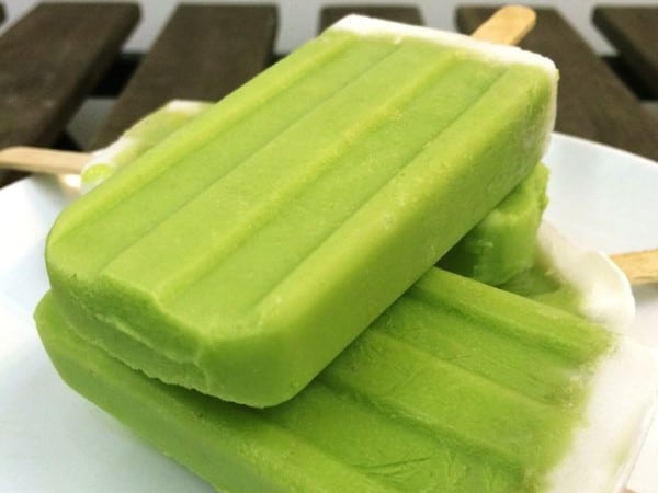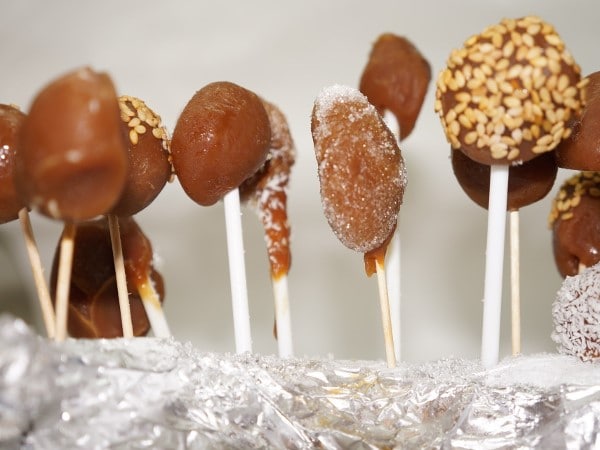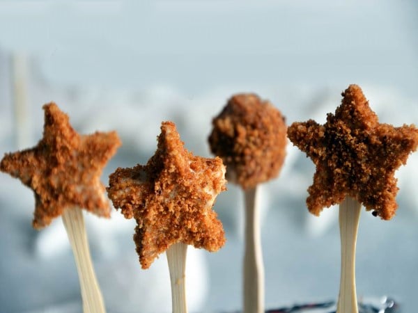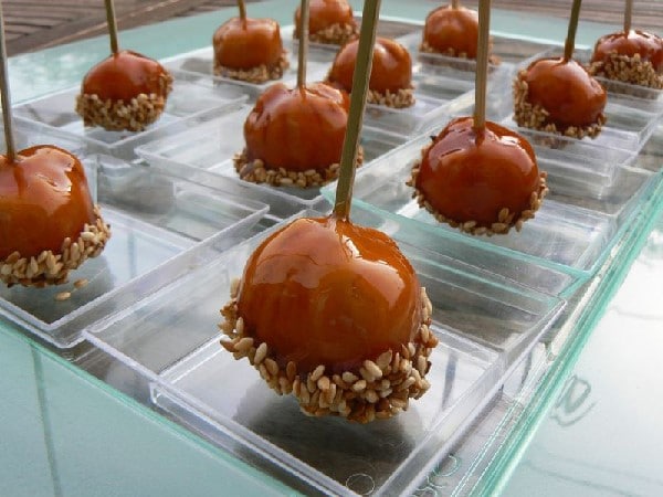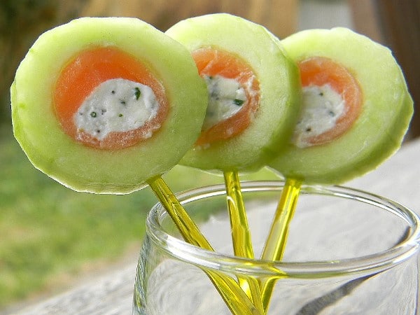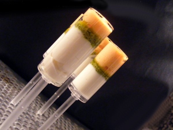 Sucettes à la crème de chèvre, pesto et mousse de poivrons jaune