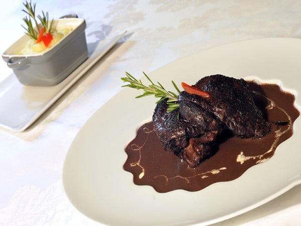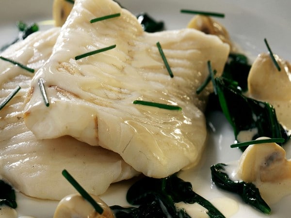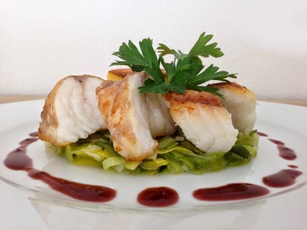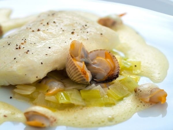 Filets de barbue à la fondue de poireau, sauce marchand de vin