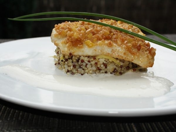 Dos de barbue dorées aux cacahuètes, quinoa au sésame