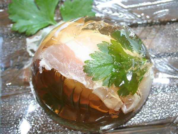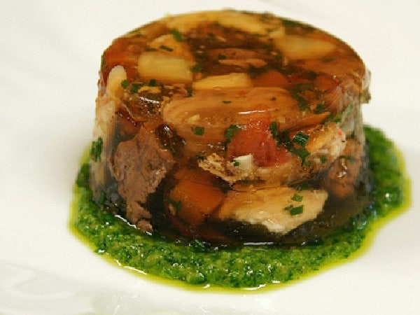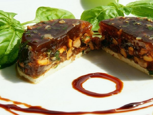 Aspic aux chanterelles, gelée au vinaigre balsamique