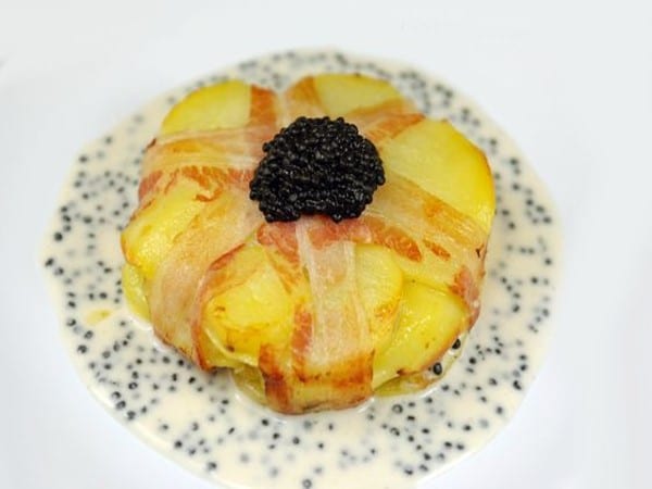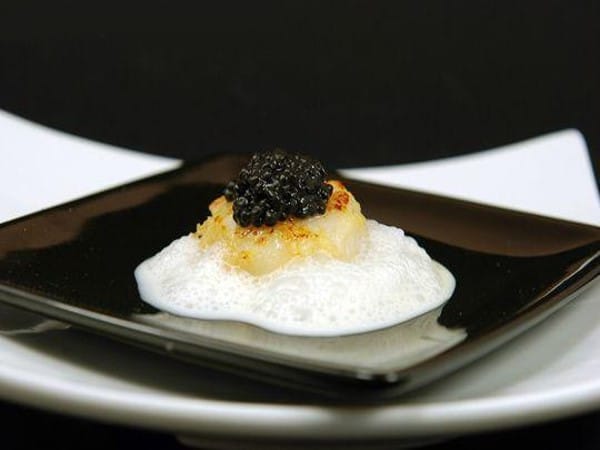Noix de saint-Jacques, émulsion de lard fumé et arënkha