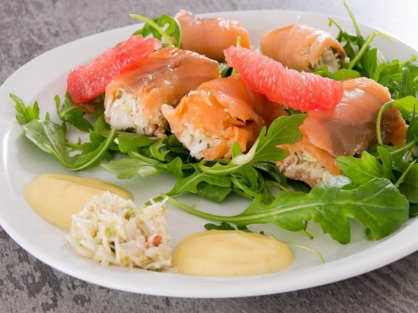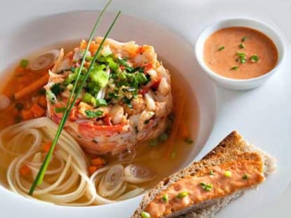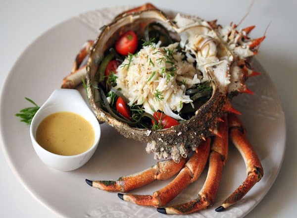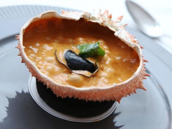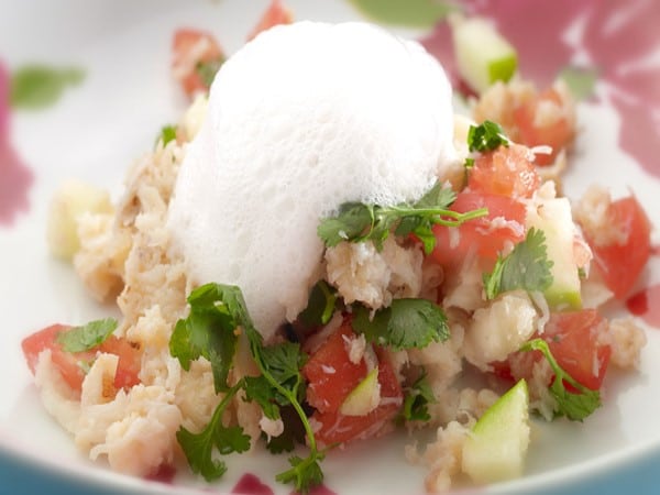 Salade d’araignée de mer fraîche et écume crémée de coco au gingembre