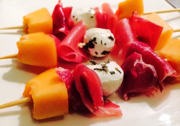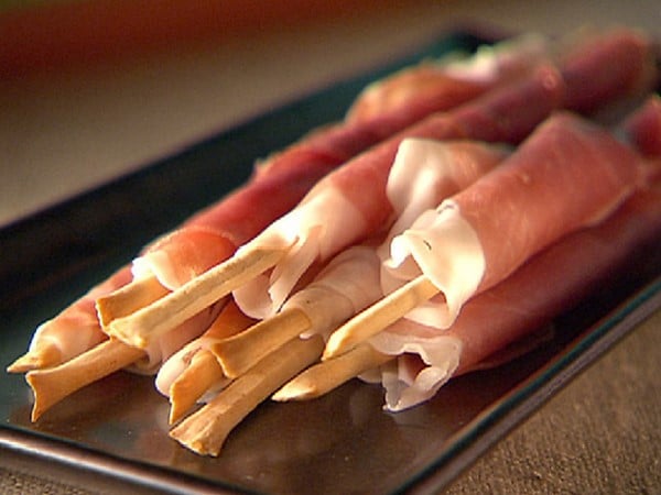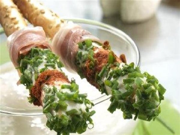 Brochette de gressin et crottin de chèvre panné au jambon cru