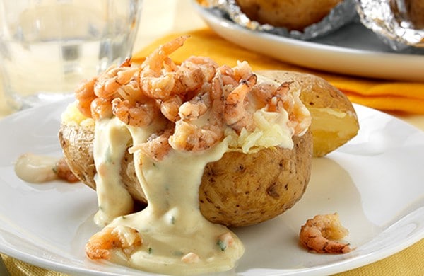 Pomme de terre en robe des champs aux crevettes