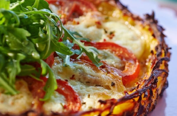 Tarte röstis au Schabziger, tomates et roquette
