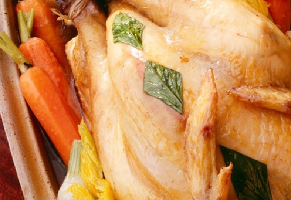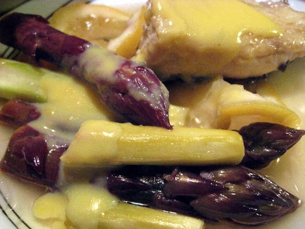 Suprême de poulet vapeur, asperges et sauce kimizu