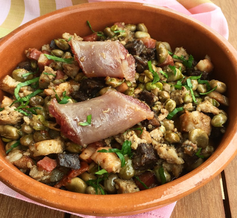 Faves ofegades à la saucisse et au lard